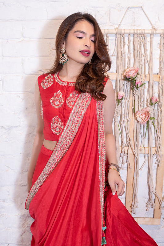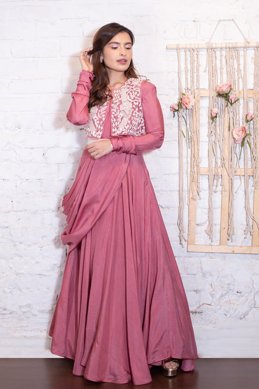 Rose Pink Draped Anarkali Jacket & Belt Set