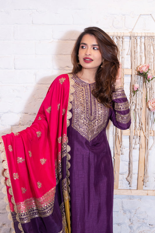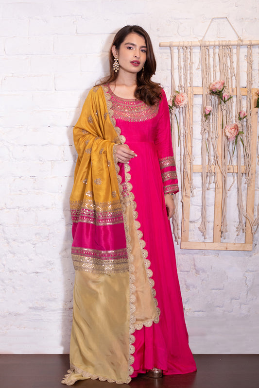 Fuchsia Anarkali & Colour Block Dupatta Set
